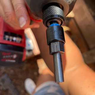 Take a piece of painters tape and place it around the drill 1.5" back. This will be your guide for how deep you drill into your post. Go back and drill into each of the shallow holes you just made and drill them until the tape grazes the post to ensure the correct depth for your tensioners, which is 1.5".