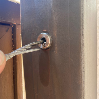 Put a dab of lubricant into the tensioner hole and then take the crimped end of your cable and insert it into the key hole. Use a 3/32” Allen wrench provided with the installation kit to secure the set screw. Tighten just enough so it sits flush with the opening.