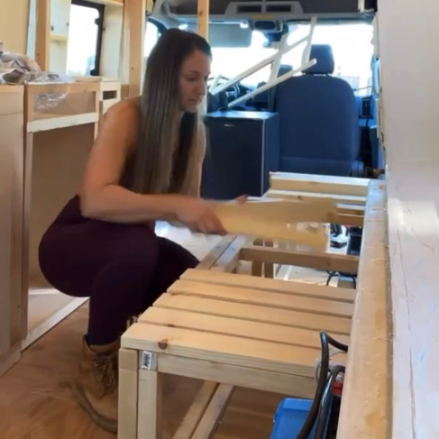 After I had the basic frame built, I quickly installed my flooring before attaching it directly to the floor and van walls.