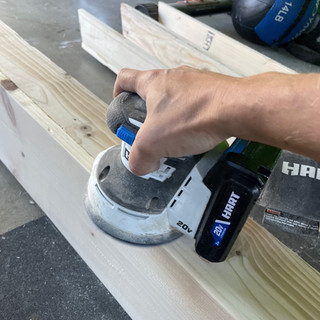 Fill holes with wood filler and then sand the entire beam with 120 grit to round all edges and create character if desired. Next follow it up with 220 grit to give it a smooth finish. After wipe clean with a tack cloth and stain. I went with my favorite combo, Minwax Simply White first to cancel out the yellow found in pine, followed up with Minwax Special Walnut.