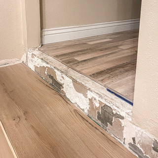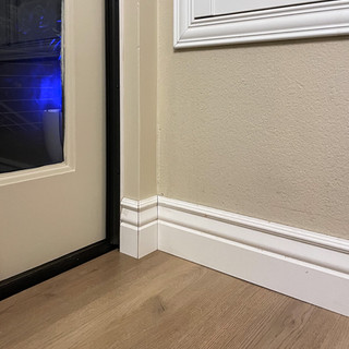 Now that the walls are painted, I started replacing the few baseboards that needed to be put back. I reused the same ones that were removed to save money and since they match what is in the rest of ourhouse. Finish work (caulk and paint) will be done towards the end but at least I have them all cut and in place!