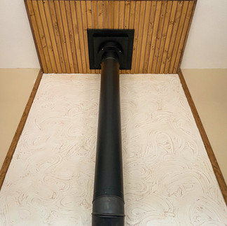 Week 7: I built the desk and did my plaster feature wall along with installing the flue for the pot belly stove and covering the top portion with wood slats. The steps leading into this room were also completed.